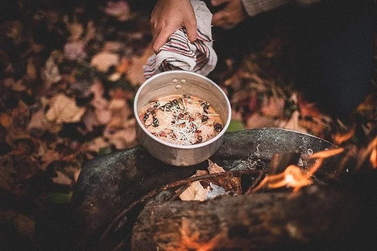 Cueillette printanière et cuisine sur le feu